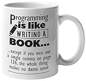 Programming Is Like Writing A Book. Funny Programmer Codes Coffee & Tea Mug For Computer Programmers, Software Engineers, IT Professionals, Web Designers, Coders, Beginners & Students (11oz)