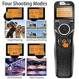 Compatible Camera Models Compatible for Sony: Alpha a7, a7II, a7R,a7RII, a7S, a3000, a5100, a6000, a77II, a58, NEX-3NL. Cybert-shot: DSC-RX1, DSC-RX100II, DSC-RX100III, DSC-RX100IV, DSC-RX10M3,DSC-RX1RM2,DSC-RX100M4,DSC-RX10M2,DSC-WX500,DSC-HX90,DSC-HX50,DSC-HX60,DSC-HX300,DSC-HX400,DSC-RX100M2,DSC-RX100M3,ILCA-77M2,ILCE-6300,ILCE-7SM2,ILCE-7RM2,ILCE-5000,ILCE-5100,ILCE-6000,ILCE-7,ILCE-7M2,ILCE-7R,ILCE7S It features no directionality,80M+ remote distance and ultra- powerful anti-interference ability. With 30 channels for options,it can avoid interference caused by other similar devices. Using international 2.4G transmission technology.it's stable and quick in response to shutter. When capturing the beautiful moments of sunrise and sunset and flowers bloom and fade , you don't need to wait for the whole time . You can set delay timer,exposure time, interval time, number of shoots, repeat shooting interval time and repeat times. Available to control different brand's cameras and models by changing different camera connecting cable.The transmitter and receiver adopts LCD screen which is more easy and simple to handle. TW-283 supports simple single shooting, 1S continuous shooting, [ BULB ] shooting, delay shooting and timer schedule shooting.Delay Shooting Setting can set delay time and shooting number, the delay time alters from 1s to 59s, shooting number alters from 1 to 99.Timer Schedule shooting time can be set from 0 sec to 99hrs59mins59sec. Shooting number can be set from 1 to 99.