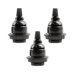 Keyless Medium Base Vintage Socket,Black Bakelite Socket E26/E27 Vintage Screw Bulbs Edison Ceiling Retro Pendant Lamp Holder (3-Pack,with Collar Ring)