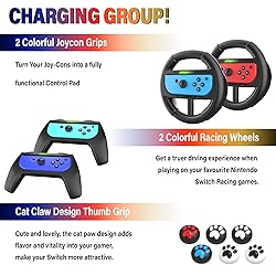 Deruitu Switch Accessories Bundle Compatible with Nintendo Switch, Kit with Carrying Case, Screen Protector, Compact Playstand, Game Case, Joystick Cap, Charging Dock,Steering Wheel, (18 in 1)