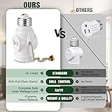 2 Outlet Light Socket Adapter,E26 Bulb Socket to Outlet Splitter,Converts Medium Screw Socket into a Socket with Two outlets,Polarized Outlet,with Pull Chain Switch. UL Listed, White (4-Pack)