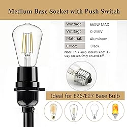 Medium Base Lamp Socket with Push ON/OFF to fix or create a new Floor and Table Lamps or light fixture, DIY Project, UL Listed EASY TO INSTALL:With brass and silver screws for black and white wire connection,then screw-in edison vintage lamp sockets are easy to put various kinds of bulbs on, easily matching any styles of decoration. The bottom cap is threaded to accept a 1/8 IP rod or nipple. Power – This lamp socket has an electrical rating of 250VAC and 250W It consists of 3 pieces: a bottom cap, a top cap, an interior, and cord grips