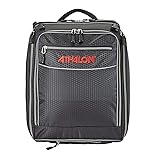 - The Athalon "On Board Boot Bag "is loaded with features to suit your active lifestyle. It’s the Ultimate Adventure Bag that is a patented new Travel System. As a backpack it can be carried in a north/south direction with its hide-away backpack straps. The design distributes heavy weight, and gives maximum comfort while lightening the heaviest cargo. As a carry-all it can be carried horizontally and comes with detachable shoulder strap. Top and side ergonomic handles give lots of versatile carrying options. There is an over-under section. It’s great for boots or equipment. Internal dividers not only organize, but protect. Internal dividers are collapsible so you can organize and protect your equipment, boots, and clothing. Interior zip-around trap door allows the bag to become adaptable for larger items. The bottom section is vented for aeration of boots and shoes. On either side, there are fully organized pockets. The top section features a full three-sided access opening, mesh wall pockets, music port, and exterior bungee cords. The bottom section accommodates one pair of Ski/Snowboard boots and protects them with padded dividers.