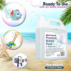 - Create incredible bubbles every time with our Premium Bubble Solution, now available in a jumbo 169 oz bottle! Designed for both kids and adults, this ready-to-use bubble fluid delivers big, long-lasting bubbles perfect for outdoor and indoor fun.✔ Extra-large 169 oz refill size: Perfect for bubble machines, guns, wands, and large events. ✔ Ready-to-use professional formula: No mixing required—just pour and enjoy. ✔ Non-toxic & kid safe: Made with high-quality, child-friendly ingredients that meet U.S. safety standards.This premium bubble liquid is ideal for birthday parties, weddings, festivals, school events, photo shoots, and everyday backyard fun. Whether you're creating magical effects for an event or entertaining little ones, our bubble fluid ensures consistent, long-lasting bubble performance.Perfect for: Bubble machines, bubble guns, bubble wands, outdoor activities, summer parties, and professional bubble shows.Enjoy thousands of shimmering bubbles with every pour!