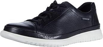 The Mephisto Thomas is a casual modern men's trainer made of super smooth leather with all the flexibility you need to get around through the day. Removable footbed can be replaced with your personal custom orthotics. Smooth leather upper in a classic men's shoe. French tricolor attached on the heel and on the tongue. Lace-up closure for an adjustable fit. Padded collar and tongue for added comfort. Unlined construction. Leather-covered Air-Relax cushioned insole for breathability.