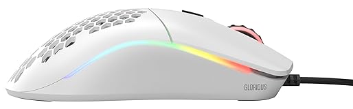Size & style: Ambidextrous lightweight mouse for gaming. Built for speed, control and comfort, with optimal weight and high durability. The Model O- (Minus) is ideal for Medium and Small hands. Ultra Flexible Cable: Our 'Ascended' Paracord is so light it produces drag-free use. The ultimate wired mouse with the feel of a wireless gaming mouse. Mouse Feet: The Glorious Skates are 100% pure Virgin PTFE that will glide like blades on ice, giving you complete control even at the highest speeds. Optimized for competitive gaming: Pixel perfect tracking, zero mouse acceleration, no more spinouts, 1000 Hz polling rate, less than 0.7mm lift-off distance. Click/scroll speed, 6 buttons with macro support, and more. Built to last: Model O-'s honeycomb design helps create the ultimate lightweight mouse, without sacrificing durability. State of the art Omron switches that are good for 20M clicks, and top-tier build quality makes the Model O- (Minus) built to last.