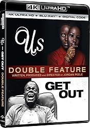 - Us: The visionary behind Get Out returns with an original nightmare, pitting an endearing American family against a terrifying and uncanny opponent: doppelgängers of themselves. Get Out: When a young African-American man visits his white girlfriend's family estate, he becomes ensnared in the more sinister, real reason for the invitation. Bonus Content: Disc 1 - Us: Includes 4K UHD, Blu-ray and a digital copy of Us (Subject to expiration. Go to NBCUCodes.com for details.)Features Dolby Vision and HDR10 for Brighter, Deeper, More Lifelike ColorThe Monsters Within UsTethered Together: Making Us TwiceRedefining a Genre: Jordan Peele's Brand of HorrorThe Duality of UsBecoming RedScene ExplorationsDeleted ScenesWe're All DyingAs Above, So Below: Grand Pas de Deux Disc 2 - Us: The Monsters Within UsTethered Together: Making Us TwiceRedefining a Genre: Jordan Peele's Brand of HorrorThe Duality of UsBecoming RedScene ExplorationsDeleted ScenesWe're All DyingAs Above, So Below: Grand Pas de Deux Disc 3 - Get Out: Includes 4K UHD, Blu-ray and a digital copy of Get Out (Subject to expiration. Go to NBCUCodes.com for details.)Features High Dynamic Range (HDR10) for Brighter, Deeper, More Lifelike ColorFeature Commentary with Writer/Director Jordan Peele Disc 4 - Get Out: Alternate Ending with Optional Commentary by Writer/Director Jordan PeeleDeleted Scenes with Optional Commentary by Writer/Director Jordan PeeleUnveiling the Horror of Get OutQ&A Discussion with Writer/Diretor Jordan Peele and the CastFeature Commentary with Writer/Director Jordan Peele