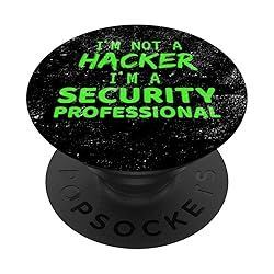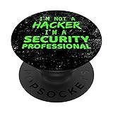 Perfect gift for IT Information Technology Information Security or Cyber Security professionals. I'm Not A Hacker, I'm a Security Professional including a computer screen green terminal classic font PopGrip with swappable top; switch out your PopTop for another design or remove it completely for wireless charging capabilities. (Not compatible with Apple MagSafe wireless charger or MagSafe wallet.) Expandable stand to watch videos, take group photos, FaceTime, and Skype handsfree. Advanced adhesive allows you to remove and reposition on most devices and cases. Note: Will not stick to some silicone, waterproof, or highly textured cases. Works best with smooth, hard plastic cases. Will adhere to iPhone 11, but not to the iPhone 11 Pro nor the iPhone 11 ProMax without a suitable case.
