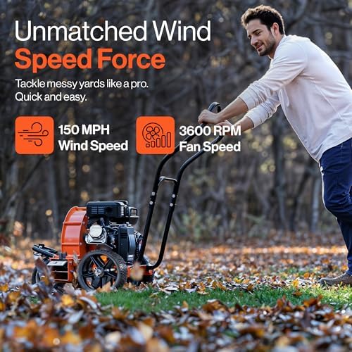 • High-Performance Engine: Powered by a 7HP 209cc 4-stroke engine, delivering 150MPH air speed and 1270CFM airflow for efficient debris clearing.