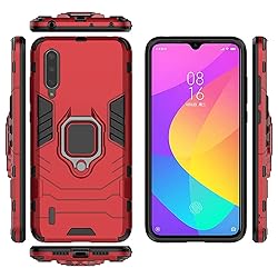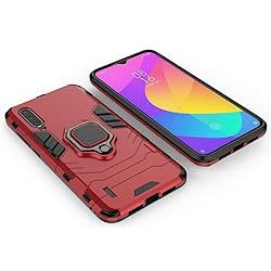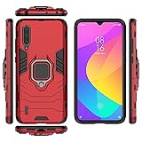 Compatible with Xiaomi Mi A3 Lite, Mi 9 Lite, Mi CC9 Case, Metal Ring Grip Kickstand Shockproof Hard Bumper (Works with Magnetic Car Mount) Dual Layer Rugged Cover (Red)