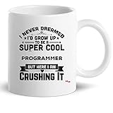 LIMITED EDITION - This coffee mug not sold in stores. Packaged, printed and shipped from the USA, UK, AUS. We offer 30 DAYS MONEY BACK GUARANTEE policy. 11OZ CERAMIC WHITE MUGS - HIGH-QUALITY: Print On Both Sides. Perfect for all hot & cold beverages. Microwave safe. Mugs have a premium hard coat that provides crisp and vibrant color reproduction sure to last for years. FUNNY JOKE COFFEE CUP - The mugs were featuring a humor joke and a sarcastic saying. The perfect gift idea for the men, women coworker to use every day in the office. The best unique gifts ideas for Father's Mother’s Day, Valentine, announcements new mom dad grandma grandpa grandmother grandfather papa nana friends! THE PERFECT PRESENT GIFTS - Perfect as a humorous present for the friend who loves tea, to coffee lovers, for fathers mother's day, birthday, Christmas, valentines day, anniversary, graduation retiring retirement retired gifts graduating employee appreciation. xPUFFER STORE - We creates t-shirt, beer cup with sayings humor that make fun gifts for your big brother or little sister, boss coworkers, from daughter son, friend family, parents, children, mother, father, husband, wife, aunt, uncle, boys, girls, seniors, adults, teens, kids, man, woman, student, teacher, male, female him or her, boyfriend, girlfriend - Programming Dev Computer computer programmer gifts for men women programmer best gifts for women men unique programmer gift ideas programmer gamer funny gift idea best thank you gifts for programmers cool appreciate programmer gifts