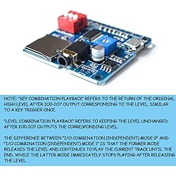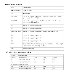 - Specifications: Support MP3\WAV decoding Support sampling rate (KHz):8/11.025/12/16/22.05/24/32/44.1/48 24bit DAC output,support dynamic range 90dB,SNR 85dB Support FAT16/FAT32 file system,support TF card for maximum 32G Drive 4~8Ω speaker by 5W class D amplifier chip on board Play 65535 pieces of music by UART control protocol Play, Pause, Selecting music,VOL /- and so on can be controlled,the communication baud rate is 9600bps Play 255 pieces of music by IO triggering Play music by One_line control protocol,Play, Pause, Selecting music, VOL /- and so on can be controlled Switch 7 operating modes using DIP switch easily Note: The track name must be named after 5 digits. We highly appreciate all customers opinions to improve the selling, also if anything you unsatisfied, please contact us for probable best solution. Package Includes: 2pcs
