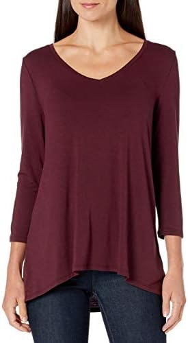 Amazon Essentials Women's 3/4 Sleeve V-Neck Swing T-Shirt (Available in Plus Size), Pack of 2