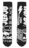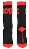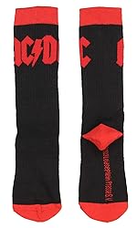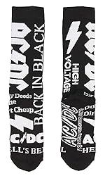 - These are officially licensed AC/DC socks, guaranteed!! One pair has the AC/DC logo in red on black socks with red cuffs, toe, and heel. The other pair is black with white writing with slogans from AC/DC: High Voltage, Back In Black, AC/DC, and Hell's Bells. The socks are athletic style with a cushioned footbed and arch support. They are made of 98% polyester / 2% Spandex.