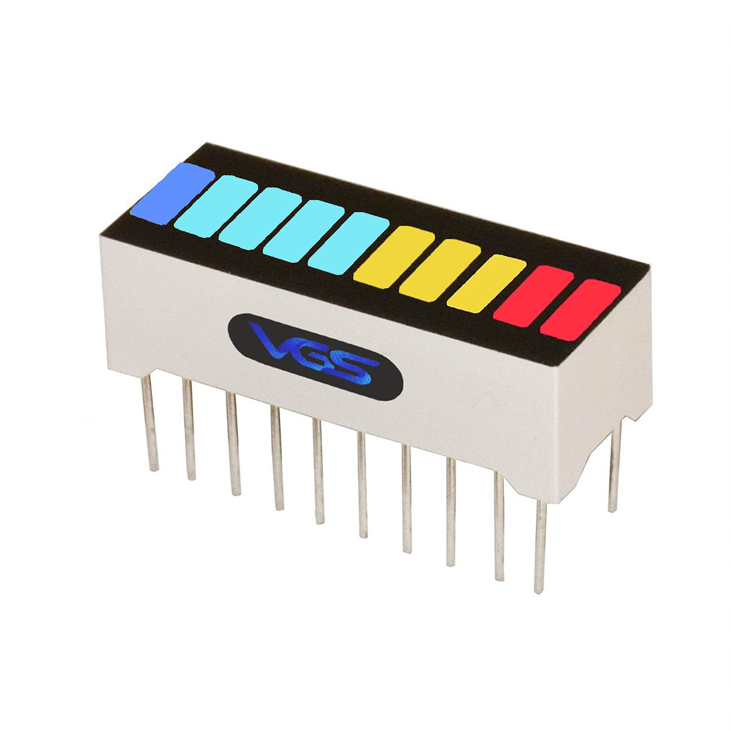 2 pcs. of RGYB 10 Segment LED Bar Graph Display with 4 Colors (2xSuper Red+3xYellow+4xSuper Green+1xBlue) Single led bar Graph for DIY or Arduino ARGYB