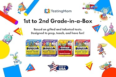 FOUR FLASH CARDS SETS - These gifted flash cards will teach your 6 to 8-year-old child math, spatial reasoning, following directions, and general knowledge. The flash cards that help students learn crucial skills for academic success and gifted testing SKILL DEVELOPMENT - Make skill development enjoyable by employing Testing Mom's amusing and ridiculous Space Babies in exercises! Using these 2nd grade flash cards, you can turn learning new concepts into a game SKILLS FOR SCHOOL READINESS - Our flash cards 2nd grade include questions and exercises of varied difficulty, allowing you to simply track progress. We'll make it simple to develop the abilities needed to perform well on gifted tests and flourish in school PREPARATION TEST - These flash cards learning improves your child's performance on gifted and talented tests like the CogAT, NNAT, OLSAT, WPPSI, KBIT, TerraNova, SCAT, GATE Test, Torrance TTCT, Gifted screening tests, private school admissions, and more.. PACKAGE INCLUDES - This 4-pack bundle of 2nd grade flash cards gives hours of offline studying fun with 1,600+ exercises on 288 cards. Encourages children to engage in hands-on activities while limiting their screen usage