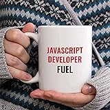 Bouncing Brick Designs JavaScript Developer Fuel Coffee Mug - Funny Gift Idea for Family/Friend/Coworker, Ceramic Cup, Birthday/Christmas/Holiday/White Elephant Present, 11 Oz
