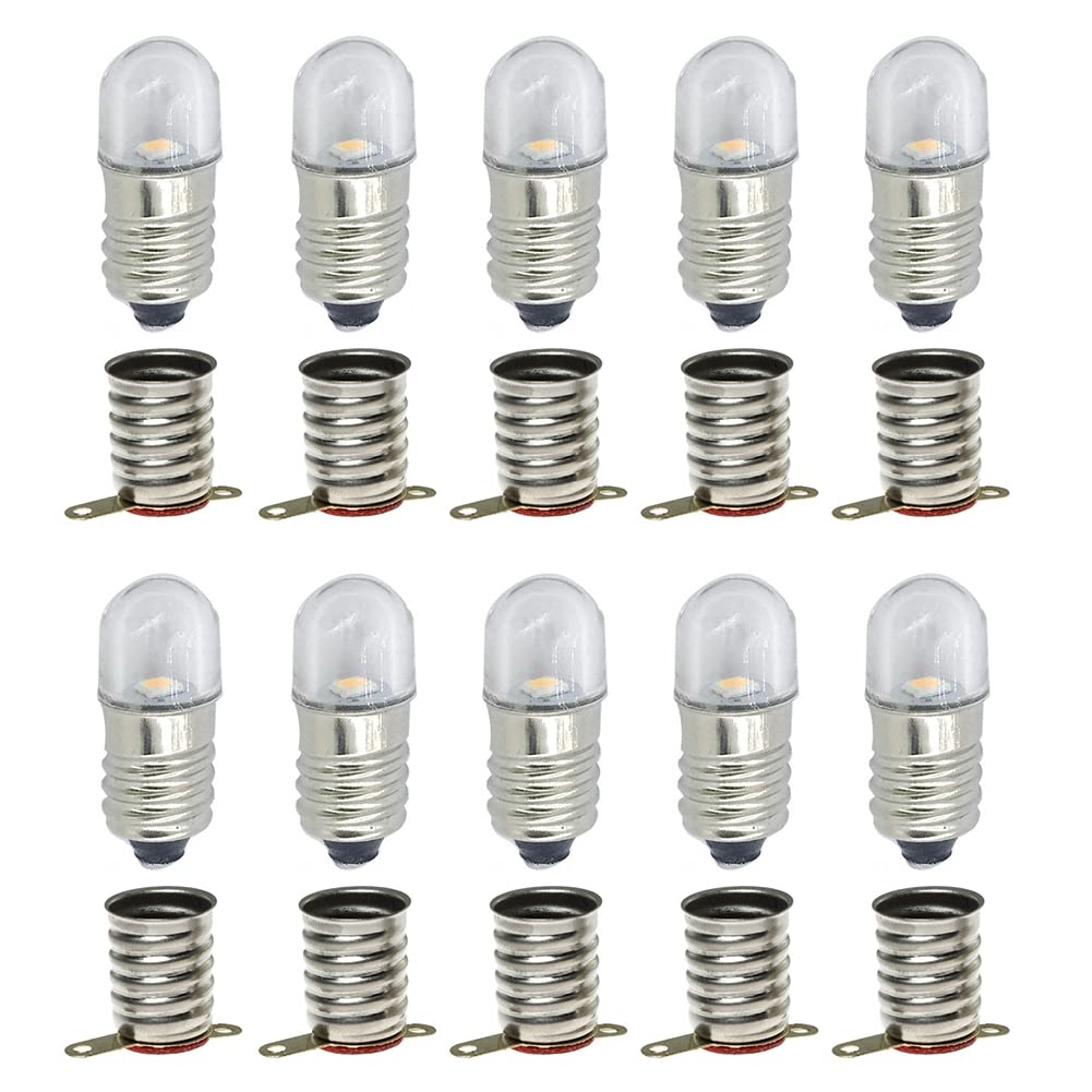 Paquete de 50 bombillas de mini base de tornillo E10 12V 0.3A DC blanca cálida