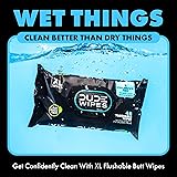 - Introducing DUDE Wipes Flushable Adult Wipes - the moist, unscented wipes that are perfect for dudes who like to keep it clean and fresh. With this 8-pack, you get a whopping 336 wipes, ensuring that you'll never run out when nature calls. These wipes are not just any ordinary wipes, they're flushable! But what sets DUDE Wipes apart from the rest? Well, for starters, we take butt-wiping very seriously. In fact, we've wiped billions of buttocks to date. That's right, we're a revolution against toilet paper, starting from our humble apartment and now wiping over 1 billion bottoms every year. So, you can trust that we know a thing or two about keeping your derriere squeaky clean. One of the things that make our flushable man wipes stand out is their size. We believe that when it comes to wiping, bigger is better. Because let's face it, nobody wants small ass wipes after devouring a big burrito. Our DUDE wet wipes for adults are enriched with Vitamin-E and Aloe, giving your skin a nourishing and soothing experience. And did we mention that they're unscented? No overpowering fragrances here, just a fresh and clean feeling. These booty wipes for men are not just for the bathroom, they're also perfect for on-the-go use. Whether you're traveling, camping, or just need a quick refreshment, our DUDE Wipes have got your backside covered. So, why settle for ordinary wipes when you can have DUDE Wipes? Join the movement, embrace the wipe revolution, and experience the cleanest, freshest wet wipe of your life. Your butt will thank you later.