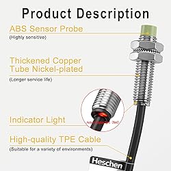 Heschen M8 Inductive Proximity Sensor Switch PR08-2DN Cylindrical Type Detector 2mm DC12-24V 3-Wire NPN NO(Normally Open) CE