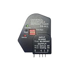 - INSTALLATIONMake selection if operating cycle and defrost cycle according to option in the above graph. Electric diagram is in front of the Universal Timer, Terminals 1 and 3 are for power in and terminals 2 and 4 will control operating and defrost cycles. After 6 seconds of completing the Installation you can choose to start the timer on a defrost or operating cycle by pressing the reset button. A: Press 1 time and the Universal Timer DS-ALL will start on the defrost cycle. B: Press 2 times and the Universal Timer DS-ALL will start the compressor operating cycle.SPECIFICATIONS- Input Voltage90-250VAC/50-60Hz T1-3- Max current operating cycleDefrost 8A T1-2Cooling 5A T1-4- Max current defrost cycle 5A- Adjustable TimingDefrost Time 15,21,25,32 min,(+/-1s)Cycle Time 6,8,12,24 hr.(+/-20s)- Power consumption 1W- Applicable Environmental Temperature:0°-160℉(-18℃-71℃)