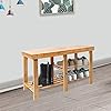 35”APLOS Bamboo Shoe Rack BenchSpecifications:Color: Wood ColorMaterial: BambooDimensions: 35.43"L x 11.02"W x 17.72" HWeight: 9.7 lbsWeight Capacity: 551 lbsSpace Between Tier: 6.1"Space Between Bottom Tier and Floor: 3.35"Package Includes: 1 x Shoe Rack