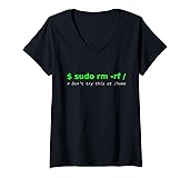 Womens "$ sudo rm -rf / Don't try this at /home" Funny IT Linux V-Neck T-Shirt