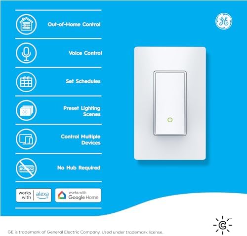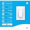 GE CYNC Smart Light Switch, Paddle Style, No Neutral Wire Required, Bluetooth and 2.4 GHz WiFi 3-Wire Switch, Works with Amazon Alexa and Google Home, White (1 Pack)