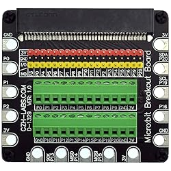 - 1, 15 connect holes for 3V, GND and 9 I/O ports(include IIC and SPI), you can easily connect alligator clip lines. 2, Pin header connected all I/O ports, 3V and GND. 19 Red pin header terminals all connected 3V. 19 Black pin header terminals all connected GND. 19 Yellow pin herder terminals connected all I/O ports, P0 ~ P16, P19 and P20. 3, Total 24 positions screew terminal blocks, connected all I/O ports, 3V and GND. Terminal block pitch 3.5mm/0.138", wire size range 26AWG to 16AWG, strip length 5mm, screw M2 steel, pin header and cage copper. 4, Micro:bit officially recommended CYLCONN high quality card edge connector. FR-4 glass fiber PCB. High quality terminal blocks. 5, The item has been soldered and test passed. NOTE:the item not include Micro:bit module.