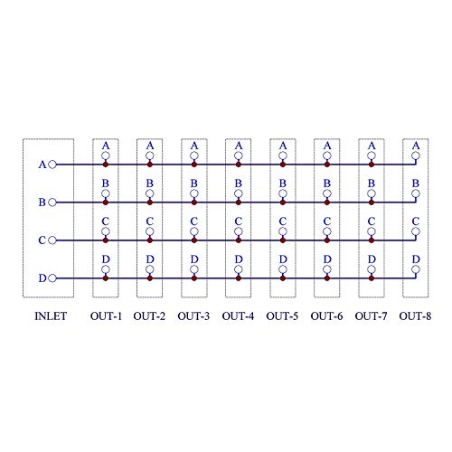 - Terminal block INLET A / B / C / D positions, maximum current 30Amp(each position), maximum voltage 300V. Pitch 7.62mm/0.3", Wire range 26AWG ~ 10AWG / 4mm square. Strip length 8mm. Screws - M3,steel, Cr3+ Zn plated. Pin header and Cage - Brass.