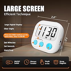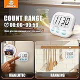 - 2 Pack Digital Kitchen Timer —— 180 Days Warranty AOUCE Timers with Big Digits, Loud Alarm, perfect for Cooking Baking Sports Games Office Upgraded Rubber magnetic 2.0 backing Package: 2 pack timers white Required Single AAA Battery (Not Included) COUNTS UP AND DOWN - As well as a countdown timer and minute timer this can also act as a stopwatch counting up from zero. Maximum time is 99 minutes, 59 seconds. Diverse and Decorative: Timer has kick-out stand for placement on the table-top. Magnetic back for placement on the refrigerator and hook for hanging Applicable people and Benefits: Perfect timer for women or mens gym workout, cooking ( egg timer ), baking, beauty, and use for take medicines on time. It is amazing choice! Quality Service: Each of our timers in carefully tested and rigorously packaged, order with confidence, click and add to cart now!