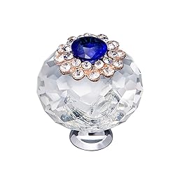 10 Pcs Crystal Clear Glass Cabinet Knobs Round Diamond Drawer Pull Handle and knob for Dresser Wardrobe Cupboard Furniture Decoration (Crystal/Round Blue)