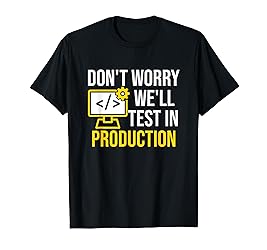 - Don't worry We'll test it in production - Great gift for the programmer, software developer, coder or anyone who loves funny coding jokes. For computer nerds & geeks who test their code in production. Don't despair when your program has an error, just test it in production. You will find the source code error very fast and then you can start testing your computer program again. Funny gift idea for a computer science graduate.