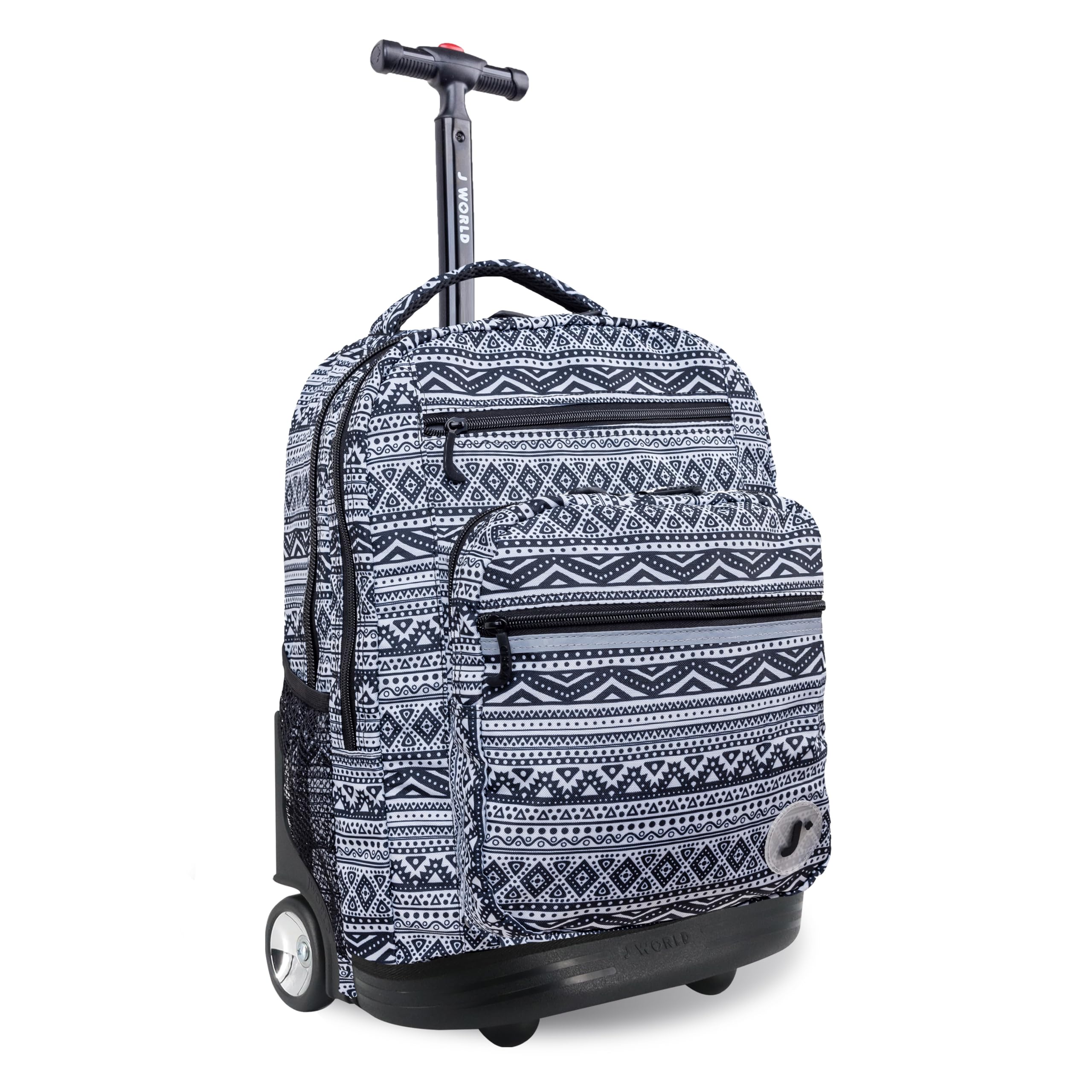 Esta mochila para niños con ruedas se convierte de una bolsa rodante a una mochila escolar portátil con tiras para los hombros. Cuenta con un gran compartimento principal, 2 bolsillos laterales y un gran bolsillo delantero con organizador interno. El mango telescópico se guarda dentro de la bolsa. Un protector de goma protege las esquinas y los bordes inferiores. ¡No más agujeros en la parte inferior de la mochila rodante para niños! Hecha de duradera tela de poliéster con un marco de metal y bordes reforzados, esta mochila rodante para niños y niñas tiene un revestimiento resistente al agua para mantener tu equipo seco. La cinta reflectante proporciona visibilidad nocturna. Cuenta con tiras acolchadas de malla de aire para los hombros y una almohadilla en la espalda. Esta mochila con ruedas para niñas y niños se convierte rápidamente en una mochila portátil cuando subes escaleras o sobre terrenos irregulares, solo saca las tiras para los hombros. Para convertirla de nuevo en una bolsa rodante, solo mete las tiras en el bolsillo trasero, sin necesidad de deshacer la cremallera. Las grandes ruedas de la mochila ruedan y giran sin esfuerzo en aceras, caminos y pasillos de avión. Las ruedas montadas en las esquinas proporcionan estabilidad adicional. Si tu familia viaja, esta bolsa funciona muy bien como equipaje de mano con ruedas para niños y cabe debajo del asiento de un avión. Nuestra promesa - En J World New York, respaldamos nuestros productos al 100%. Si tienes algún problema con esta mochila rodante para niñas y niños, haremos las cosas bien