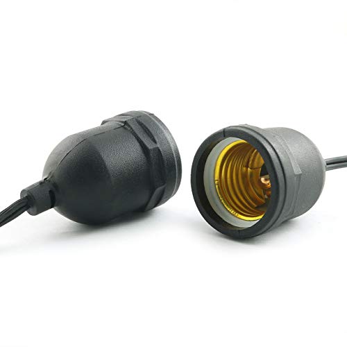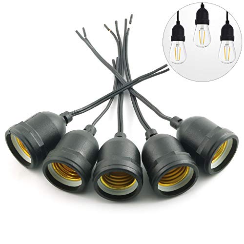 ZYAMY 5pcs Simple Screw Type E26 E27 Temporary Light Socket, Flame Retardant Waterproof Pigtail Lamp Sockets, Black