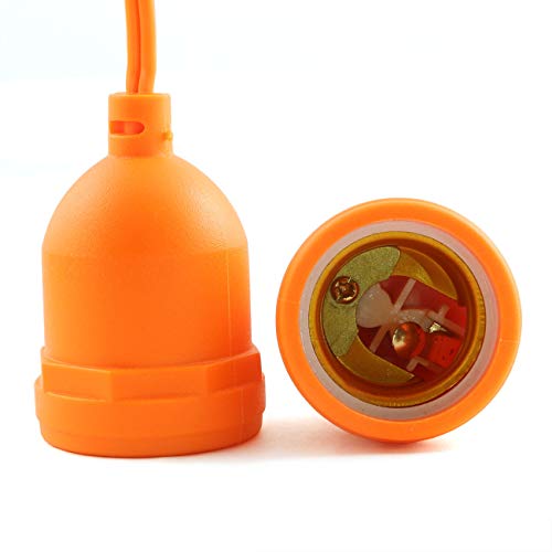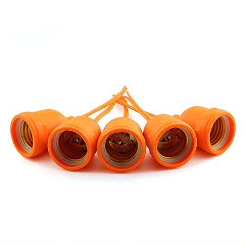 ZYAMY 5pcs Simple Screw Type E26 E27 Temporary Light Socket, Flame Retardant Waterproof Pigtail Lamp Sockets, Orange