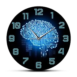 The Geeky Days Binary Code Art Intelligence Brain Printed Wall Clock Silent Movement Wall Watch Company Office Decor Brain Circuit Board Art for Geeks