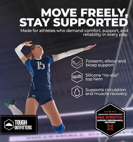 Tough Outdoors Sports Compression Arm Sleeves for Kids Men & Women - Girls Boys Baseball Arm Sleeve Youth and Teen - For Playing Football Basketball Shooting Volleyball