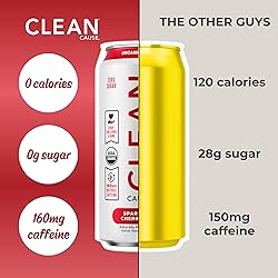 CLEAN Cause Zero Sugar Cherry Lime Yerba Mate Tea Sparkling, USDA Organic Energy Drink Alternative, Zero Calorie, 160mg Natural Caffeine, Soda Alternative, Plant-Based (16oz cans, 12-Pack Case)