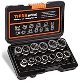 THINKWORK Bolt Extractor Kit, 13+1 Pieces Nut Extractor Socket Set, 3/8" Drive Rounded Bolt Remover, Lug Nut Removal Tool for Damaged, Rusted, Rounded-Off, Stripped Fasteners