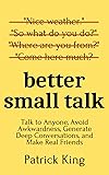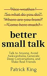 - Networking events suck, but they can suck less. What to say and when to say to be likable, connect, and make a memorable impression.Actionable and applicable verbal maneuvers for just about every phase of conversation. From hello to goodbye, with strangers or old friends, you'll learn how to simply go deeper.NO MORE: interview mode, awkward silence, or struggling to hold people’s attention.Better Small Talk is a unique read. Imagine the following situation: you've just put on your name tag, and you're approached by a stranger. What do you say? Nice weather today.No, we can do better than this. Learn better small talk to avoid awkwardness, put people at ease, and build real rapport. Learn to open people up without them even realizing it.Patrick King is an internationally bestselling author and social skills coach. His writing draws of a variety of sources, from scientific research, academic experience, coaching, and real life experience. He suffered for years as a shy introvert and managed to boil human interaction down to a science - first for himself, and now for you.You'll learn exact dialogues, responses, phrases, and questions to use.•How to tell captivating stories and what to actually focus on.•Four ways to warm yourself up and prepare for even the most unpredictable conversations.•Instantly setting a tone of friendship and openness with strangers.•Common and subtle conversational habits you need to stop right nowBecome someone who is magnetic and who can make new friends in any situation.Simple conversation is the gatekeeper to friendships, your dream career, romance, and overall happiness. The ability to connect with anyone is an underrated superpower. People will be more drawn to you without even knowing why, and never again people will people be bored talking to you. You’ll never run out of things to say when you master these conversation tactics.Make each conversation count by clicking the BUY NOW button at the top of the page.This is the sixth book in the “How to be More Likable and Charismatic” series as listed below:•Improve Your Conversations: Think on Your Feet, Witty Banter, and Always Know What To Say with Improv Comedy Techniques•Improve Your People Skills: How to Connect With Anyone, Communicate Effectively, Develop Deep Relationships, and Become a People Person•The Art of Witty Banter: Be Clever, Be Quick, Be Interesting - Create Captivating Conversation•Principles of Likability: Skills for a Memorable First Impression, Captivating Presence, and Instant Friendships•Magnetic Charisma: How to Build Instant Rapport, Be More Likable, and Make a Memorable Impression – Gain the It Factor•Better Small Talk: Talk to Anyone, Avoid Awkwardness, Generate Deep Conversations, and Make Real Friends
