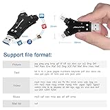 4 in-1 SD Card Reader:The memory card reader has various interfaces,usb / usb c(type c)/micro usb/sd card slot/micro sd card slot and iOS devices charging port for iPhone/iPad,which allows you to easily transfer the required files between different devices. With Charging Port : the sd card reader adds a charging port to its design. When you use an SD card adapter to charge your iphone/ipad devices, You can enjoy charging while transferring file data. No longer worry about power shortage. Real-Time Sharing and Data Management:High-speed two-way transmission allows you to save a lot of waiting time. micro sd card reader provides intelligent file viewing and management functions, allowing you to easily manage data between iPhone /ipad/ Android / computer and other devices. Compatibility:The sd/micro sd card reader support all iPhone with iOS 8.0 and up and iPads with iOS 8.0 or later/OTG Android phone/computer and other devices with usb port,Maximum support memory card capacity 512GB.(the package does not include sd card and micro sd card) Small and Portable:The slim and sleek design + keychain design allows the sd card reader to be placed into your pocket.When you are traveling outdoors or exploring, the keychain can prevent the memory card reader from being lost. And carry it with you.