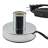 SIMPLE AND STURDY.Heavy metal base makes it doesn’t slide.Perfect to set a table lamp or a floor lamp UL LISTED Ceramic Bulb Socket and Wire Plug. Copper wires and connector carries wattage up to 250W.Fits Incandescent,Halogen,CFL and LED Light Bulb Polished Metal Makes SHINY CHROME LOOKING VERSATILE -Perfect for any standard E26 E27 base light bulb, bulb with bluetooth speaker and motion sensor,party bulbs, bedside light with alexa compatible smart bulb,holding ceramic christmas trees,working with firework bulb,accent light flickering bulb,flame bulb,decorative bulb,bug light.Great for lighting up hard to illuminate areas 5.8ft cord with in-line ON/OFF switch makes the standard base bulb easy to control.Plug it and stay where it is to turn on/off the light bulb