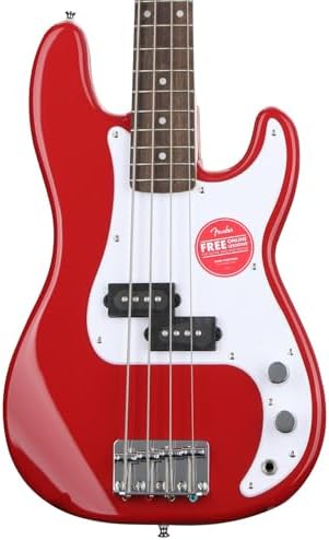 The Squier Mini Precision Bass® is the perfect companion for players seeking a reduced-size instrument with classic styling and familiar Fender® tone. Highlights include a thin and lightweight body, a short-scale neck with an easy-to-play “C”-shaped profile, a Squier split single-coil pickup with volume and tone controls for sonic variety, and a hardtail bridge for solid tuning stability.