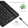 - Uso a largo plazo: Batería de litio recargable incorporada, después de carga completa, puede usarse durante más de 20 días (cuando se usa continuamente durante 2 horas al día). Si no lo usa durante más de 10 minutos, el teclado entrará automáticamente en estado de reposo para ahorrar energía. Si desea continuar usándolo, solo haga clic en cualquier tecla para despertar el teclado.