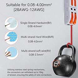 【Safe Wire Connectors Push In】The push wire connectors are fantastic and a huge improvement over wire nuts,mounting brackets let you tuck them out of the way in your junction box if necessary.With high quality flame retardant insulating material,modified nylon PA66, which is long life, no corrosion, anti-aging, pressure 4KV and against electrical shock.A boon for DIYers and tinkerers and whom enjoys occassional DIY project. 【1 Size Fits All Wire within 28 to 12awg】Join different types and thicknesses of wire.Quick connect to wire from 28 to 12awg,no more frustration that you only have the wrong size wire nuts available.It is widely used in building wiring where space is at a premium for all connections requiring.Replace a switch in less than a minute and not have to deal with hassle of unwinding a twisted wire bundle. 【Easy to Remove, or Reposition】Allowing no twisting to install, which is easier and means less stress on the wire and insulation jacket. Instead of traditional wire nuts connectors and electrical butt connectors twist-type,technological innovation reduce wiring time by 70%.Even more than for home improvement, these electrical connectors are perfect for projects, tinkering and experimenting as well. 【Practical 】The working voltage range of the wire connector is from 110V to 600V, Which is very practical.No tricks or special techniques. When a few wires are coming together,using these electrical connectors where they are more compact, plus it is much easier to assemble with just 2 hands. 【Reusable】This Wire Connector is suitable for soft and hard wire.Every junction independent shrapnel,different wire managed separately,different diameter can be connect security, it is a reusable connector.Easy to use, can undo and reuse holds wire securely.