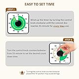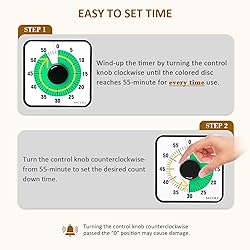 NO BATTERIES REQUIRED - Premium mechanical countdown timer for cooking, meetings, teaching, playing games, doing homework, and more! Completely mechanical—no batteries needed A COUNTDOWN TIMER HAS MANY PRACTICAL USES – Improve time management and more! Examples: bedtime routines, setting timeouts. Excellent tool to help children understand the passage of time visually. Recommended for special education and K-12 teachers ENERGY BOOSTER: Vitality green disc ignite your morning routine. Infuse study sessions and classroom tasks with a natural burst of fresh, focus-driven energy SMALLER FOOTPRINT WITH MULTIPLE PLACEMENT OPTIONS – 1) Features powerful magnetic backing panels to place on refrigerators, whiteboards, and more! 2) It can open up for placement on flat surfaces like desks and countertops. 3) Easily wall mounted EASY TO USE – Simply turn the control knob clockwise to expand the bright blue disk—making it easy to see the time count down visually Note: To activate the timer before each use, turn the control knob clockwise to the 55-minute position, then turn it counterclockwise to the desired time. About 70 decibels when the bell rings