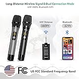 Wireless Microphone with Bluetooth, Professional UHF Dual Handheld Dynamic Metal Mic System Set with Rechargeable Receiver, 160 ft Range, 1/4''Output, for Karaoke Machine, Singing, Amp, PA Speaker