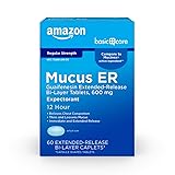 ACTIVE INGREDIENT: Amazon Basic Care Cough and Mucus Relief contains Guaifenesin 600 mg, an expectorant; compare to the active ingredient in Mucinex 12-HOUR RELIEF: Get immediate and long-lasting chest congestion relief; just one dose releases the regular strength phlegm relief medicine you need and lasts for up to 12 hours COUGH EXPECTORANT: Trust Guaifenesin 600 mg to thin and loosen mucus to make coughs more productive MUCUS RELIEF: Amazon Basic Care Cough and Mucus Relief Extended-Release Tablets relieve chest congestion caused by excess phlegm GLUTEN FREE: This product is free of gluten; safe for adults and children 12 years of age and older