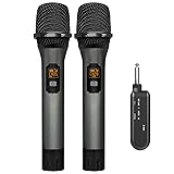 VeGue Wireless Microphone, UHF Cordless Dual Handheld Dynamic Mic Set with Rechargeable Receiver, for Karaoke Party, Voice Amplifier, PA System, Singing Machine, Church, Wedding, Meeting, 200ft (WM-2)
